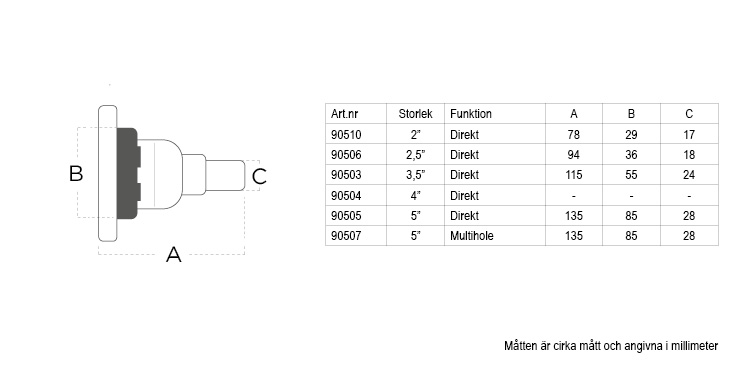 Jets till spabadet som skruvas in i bakstycket. Finns i flera storlekar med ställbar stråle